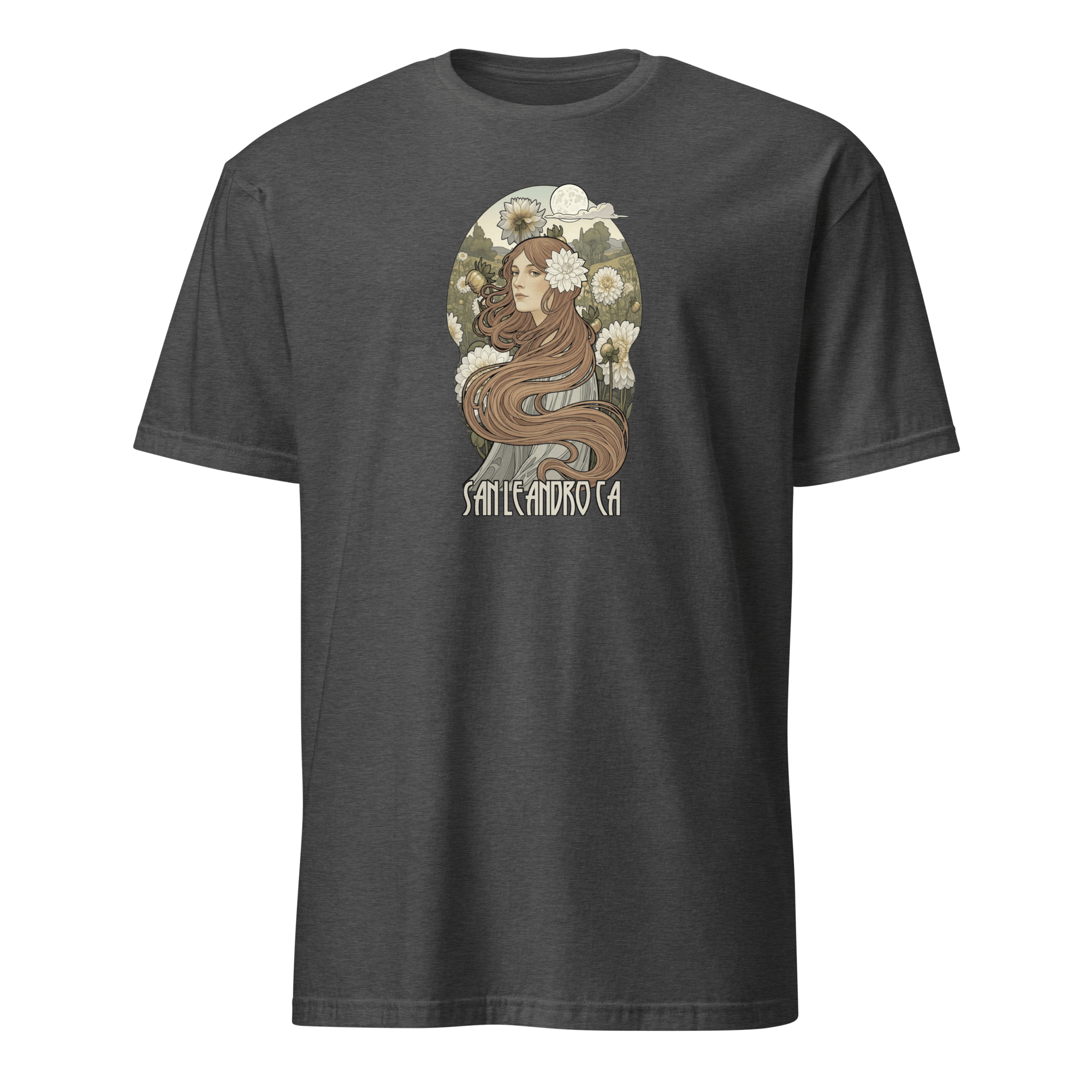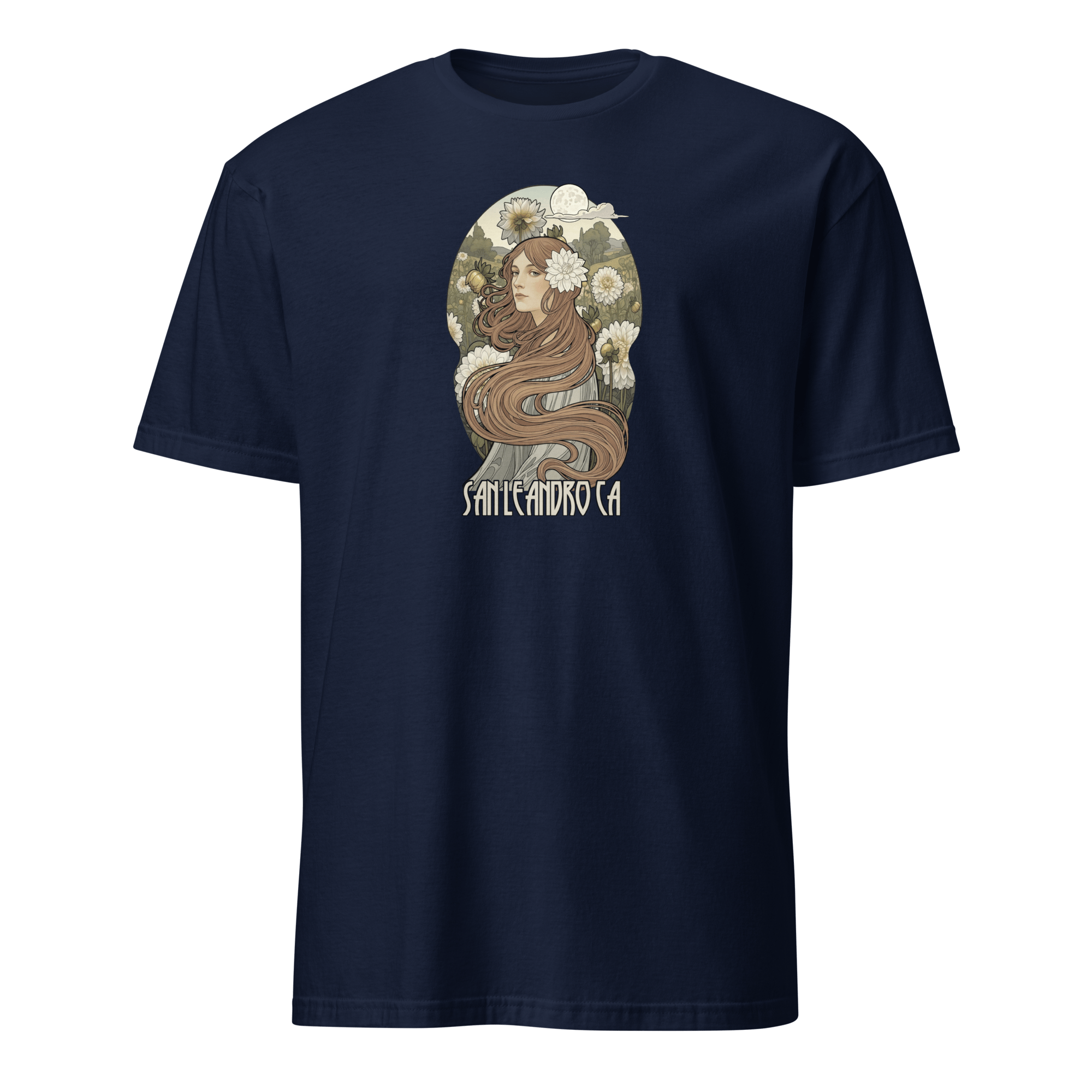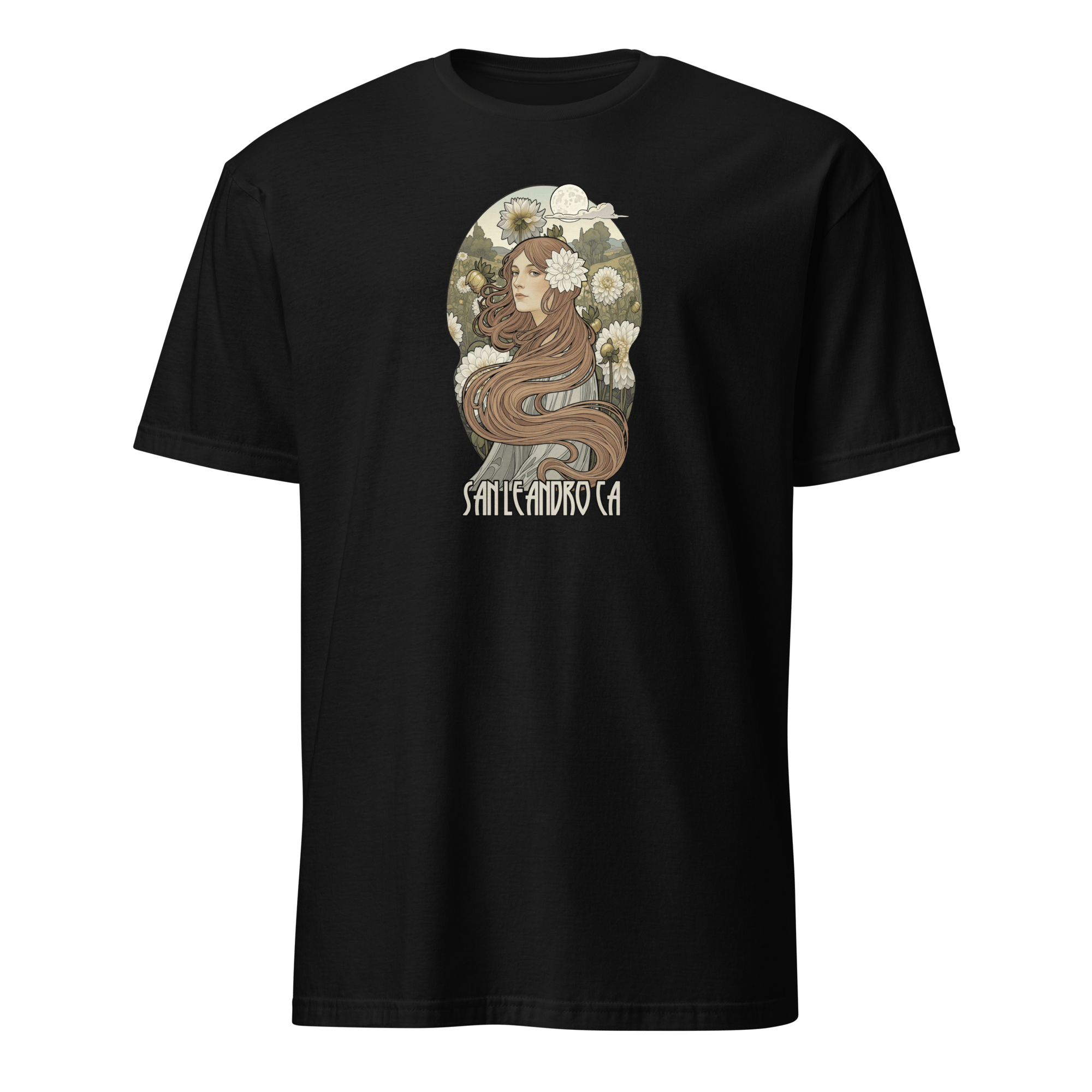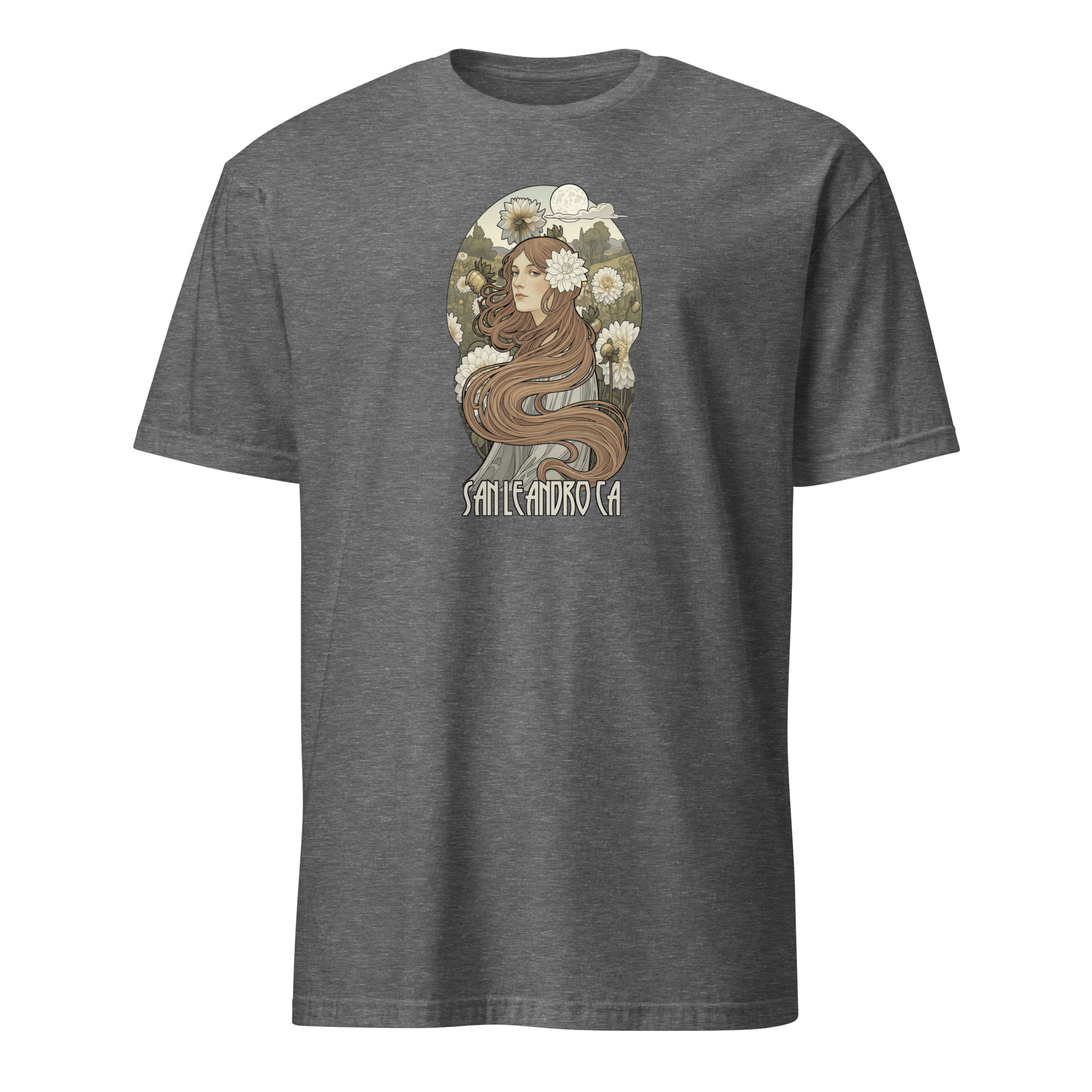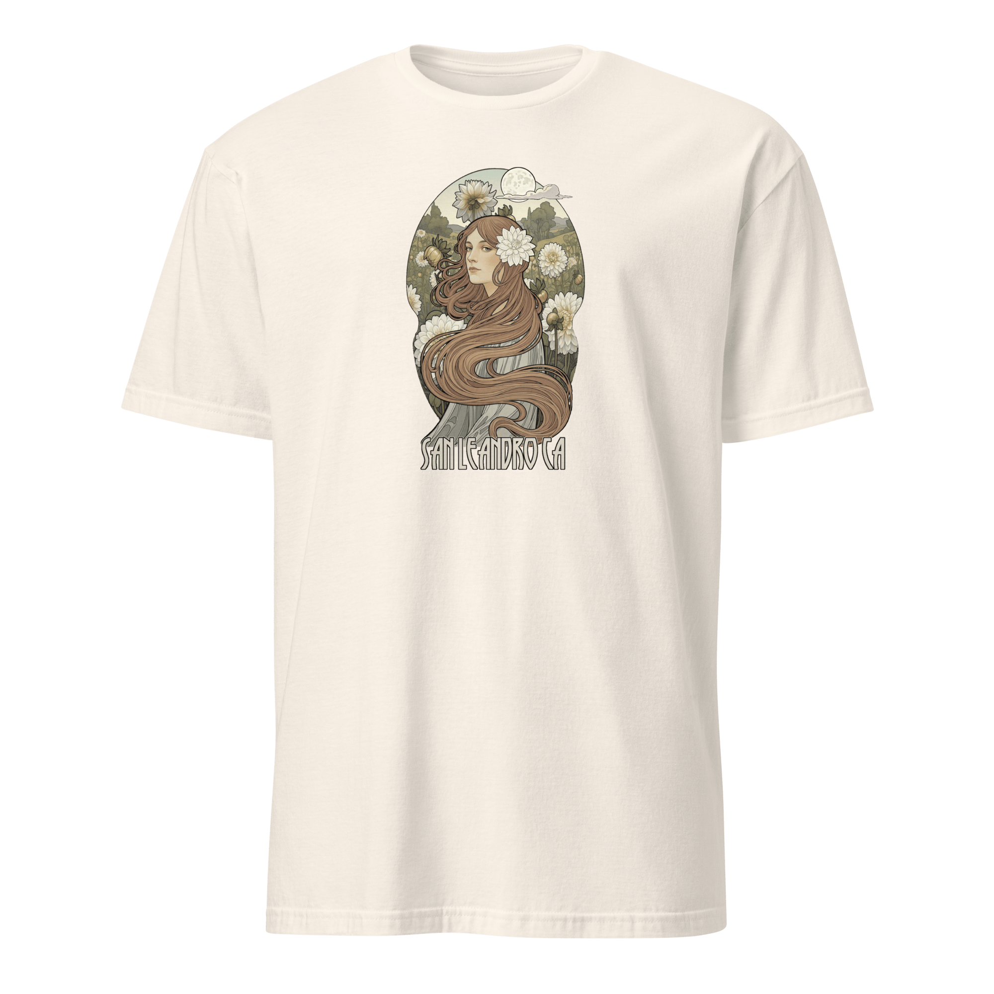 Art Nouveau style design with white dahlias inspired by our visit to the 2025 San Leandro Dahlia Society show. This shirt is made of 100% ring-spun cotton and is soft and comfy.