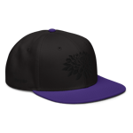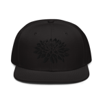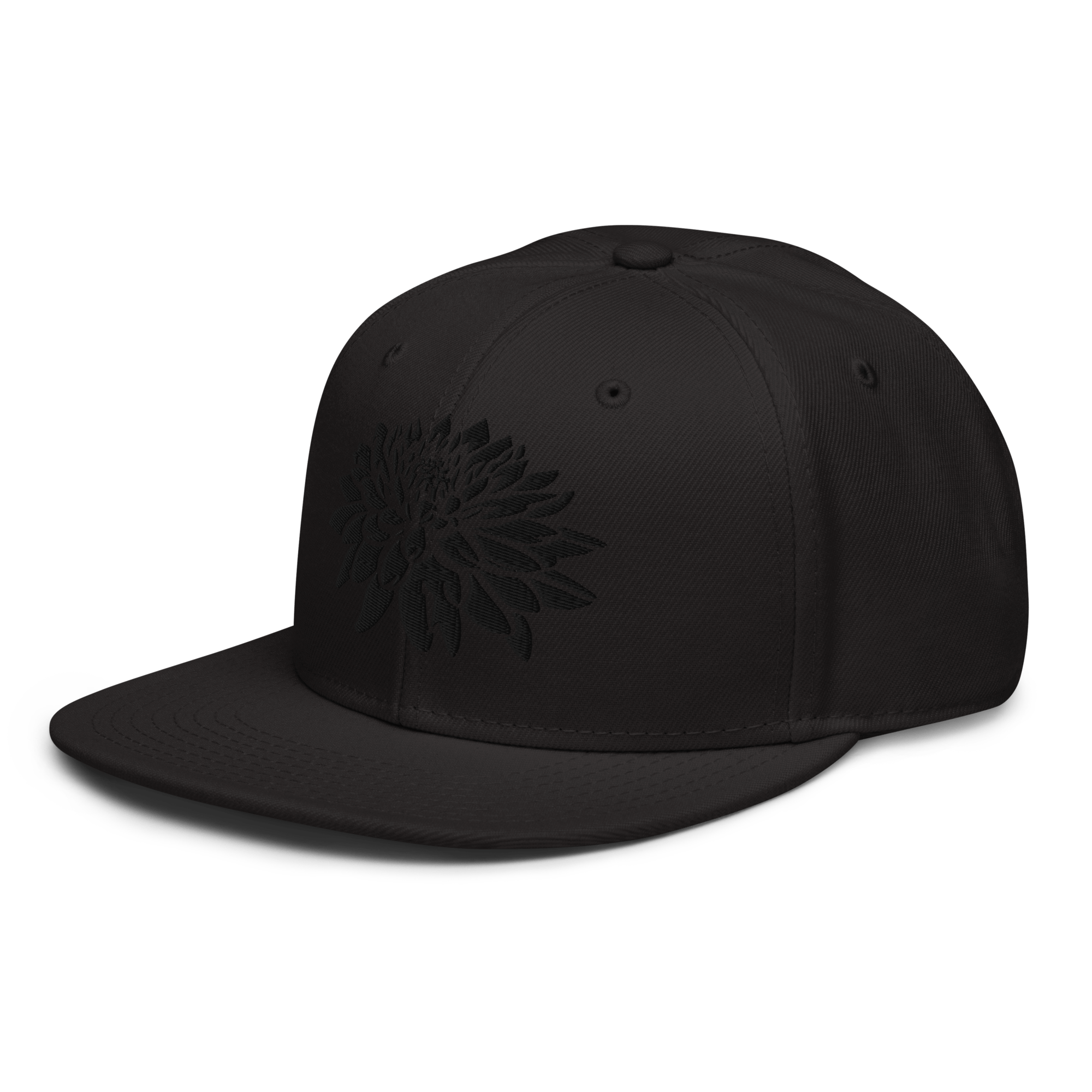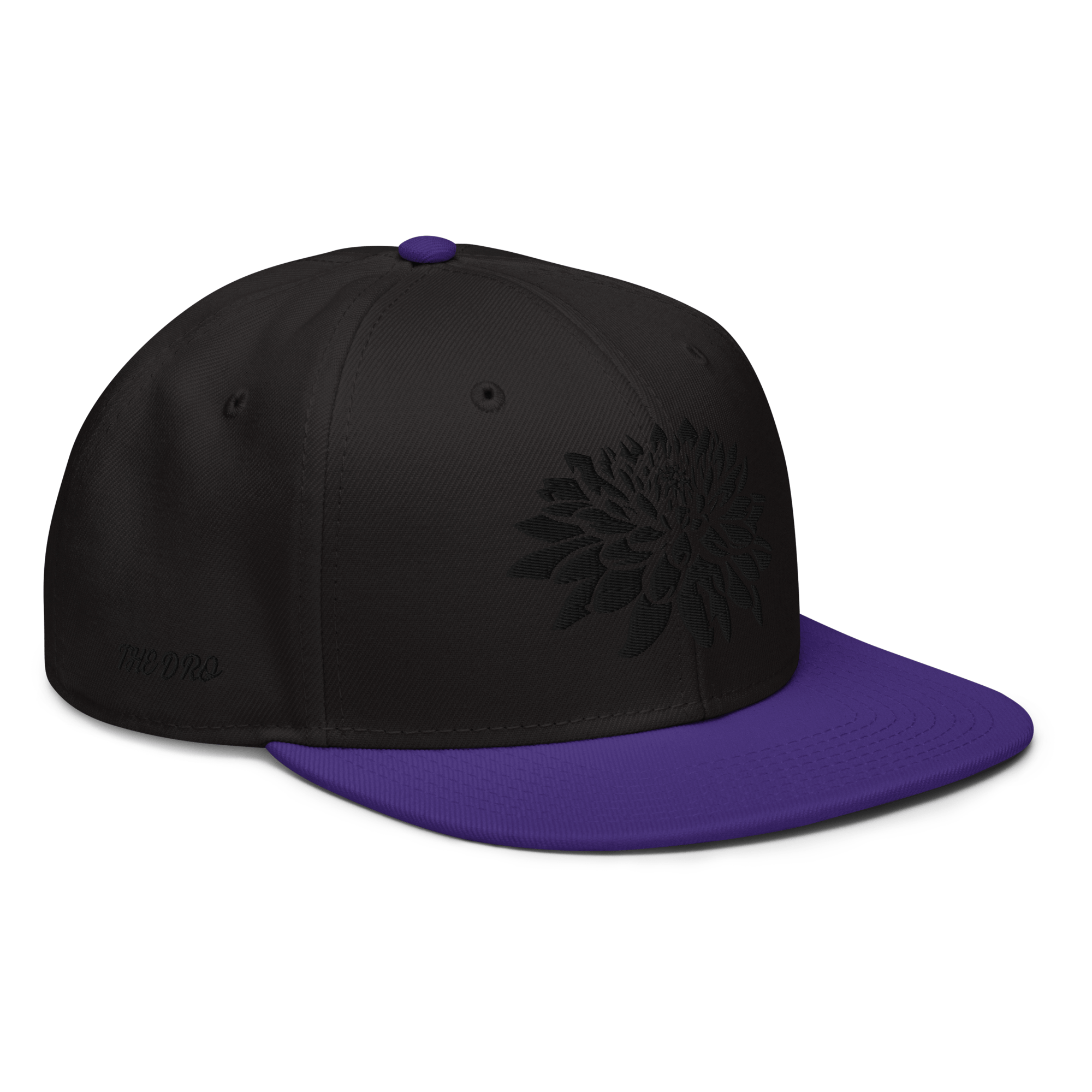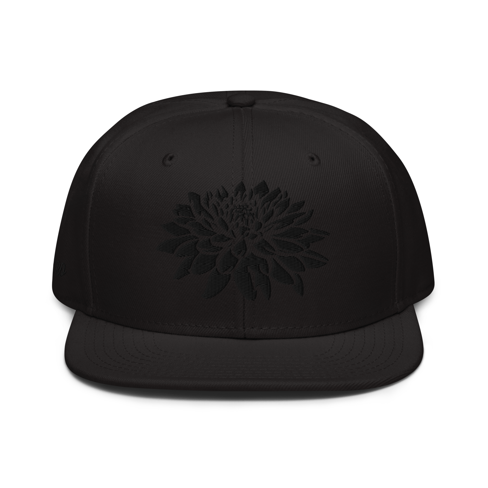 Sometimes the dark side is the best side. Dahlia in this design is inspired by our visit to the San Leandro Dahlia Society show. This snapback is structured and high-profile, with a flat visor and a subtle grey under visor.